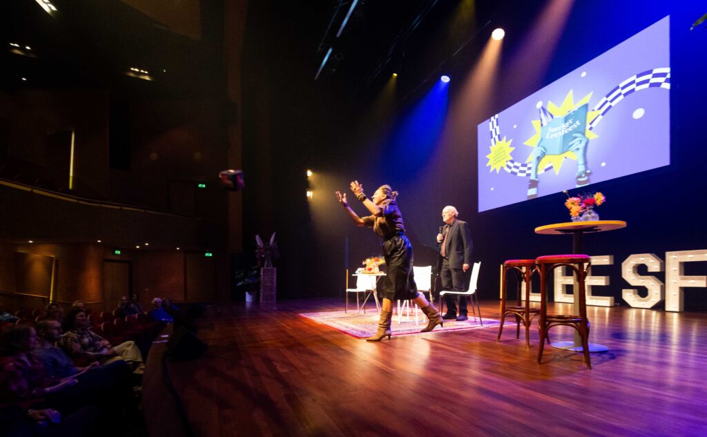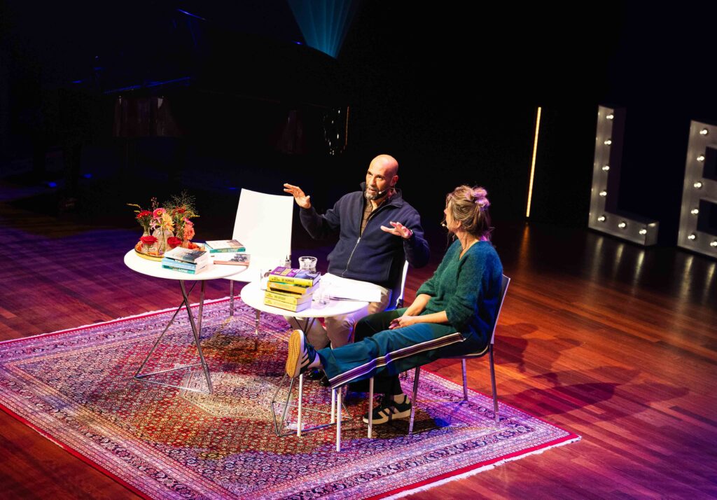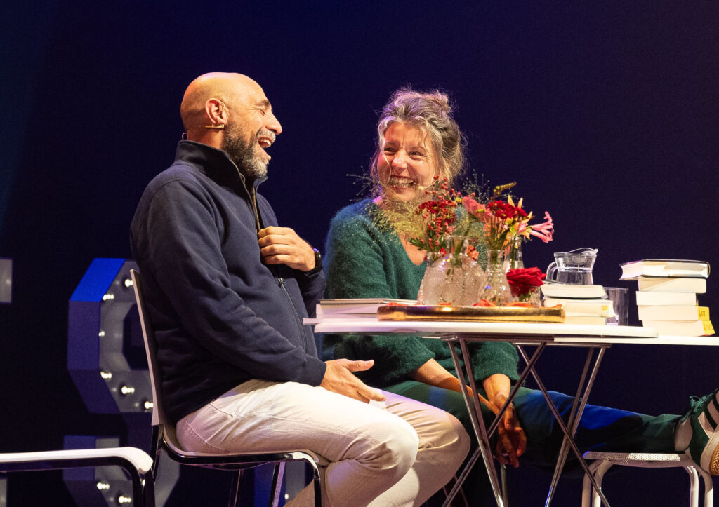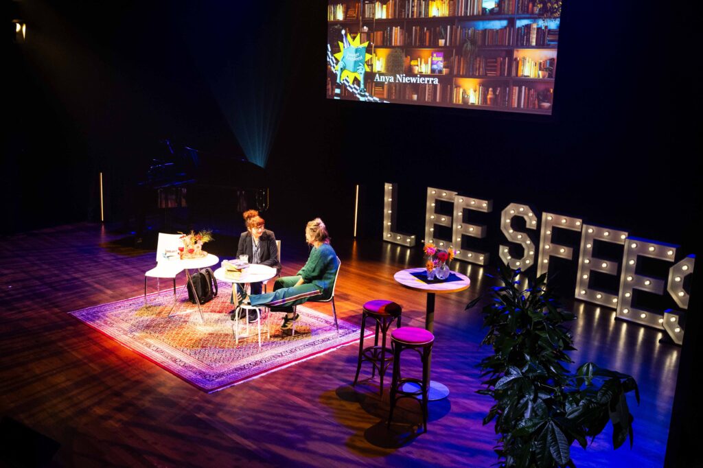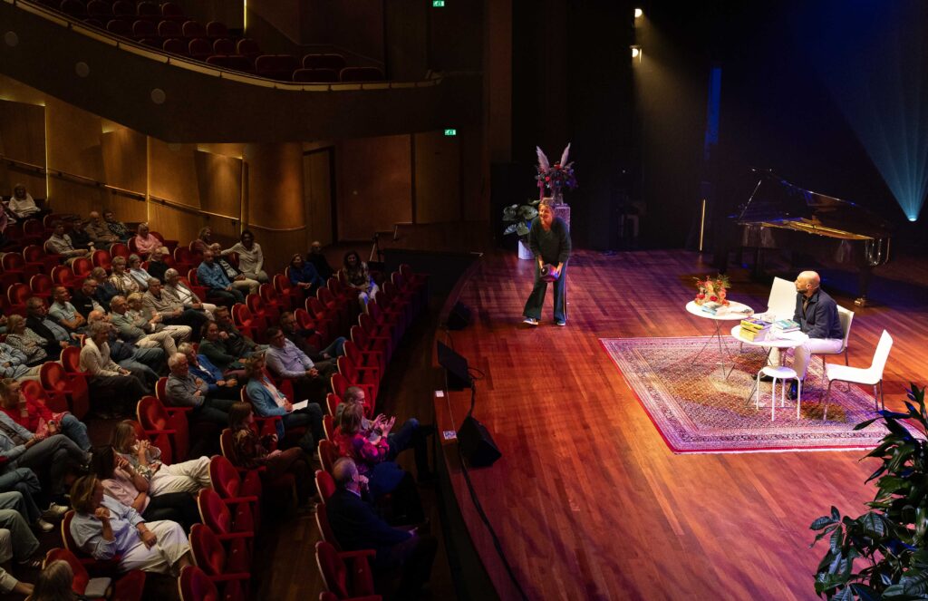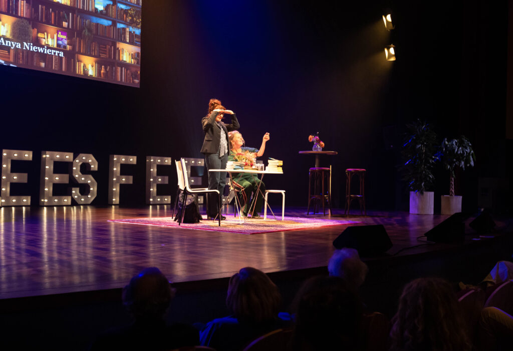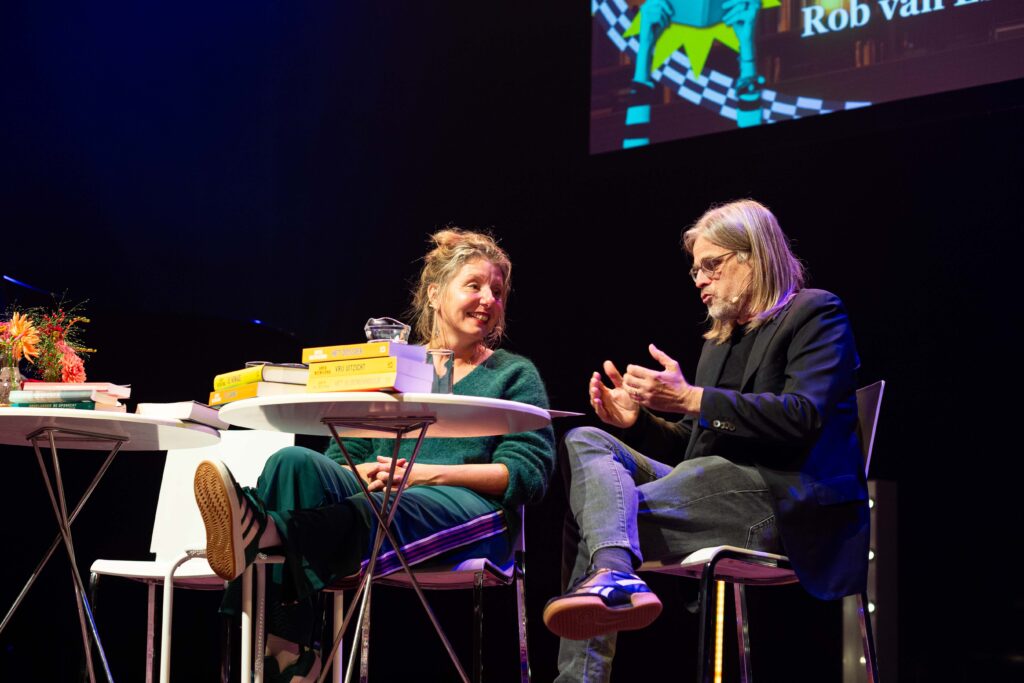 Daarna volgden inspirerende gesprekken met onder meer Anya Niewierra, Abdelkader Benali en Rob van Essen. Van Essen had een primeur: hij liet het publiek meeluisteren naar het eerste hoofdstuk van zijn nieuwe boek en vergeleek zijn creatieve proces met planeten die uit brokstukken ontstaan – een metafoor die zichtbaar indruk maakte. Ook Jilt Jorritsma vertelde beeldend over de ideeën achter zijn werk, wat leidde tot een gesprek “vol lagen”, zoals bezoekers het noemden. Hij ging in gesprek met Anne-Goaitske Breteler over de suïcide van zijn Friese tante. Van Breteler reageerde daarop met haar onderzoek over suïcide op het Friese platteland. Wat volgde was een ontroerend gesprek.