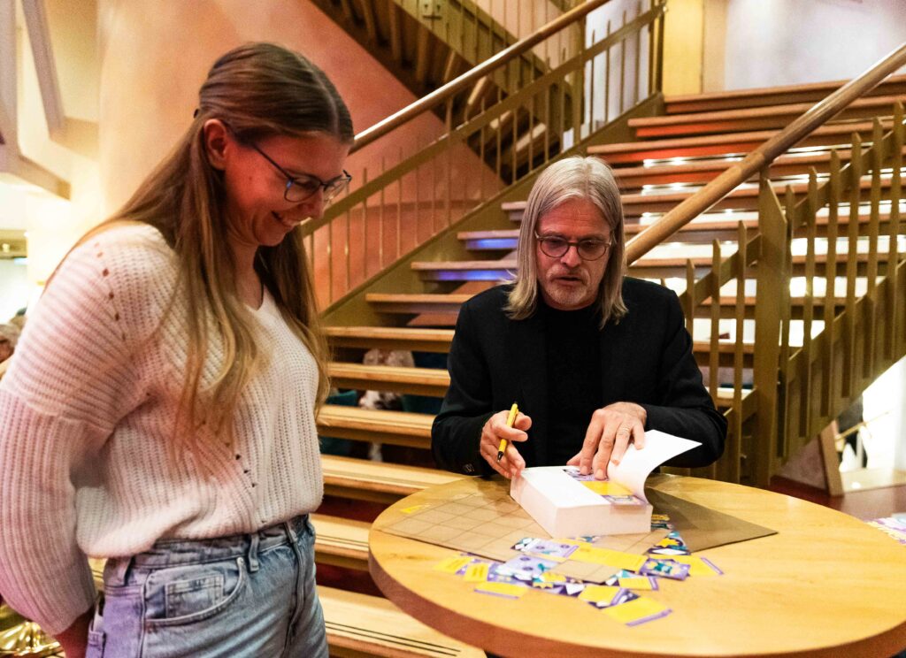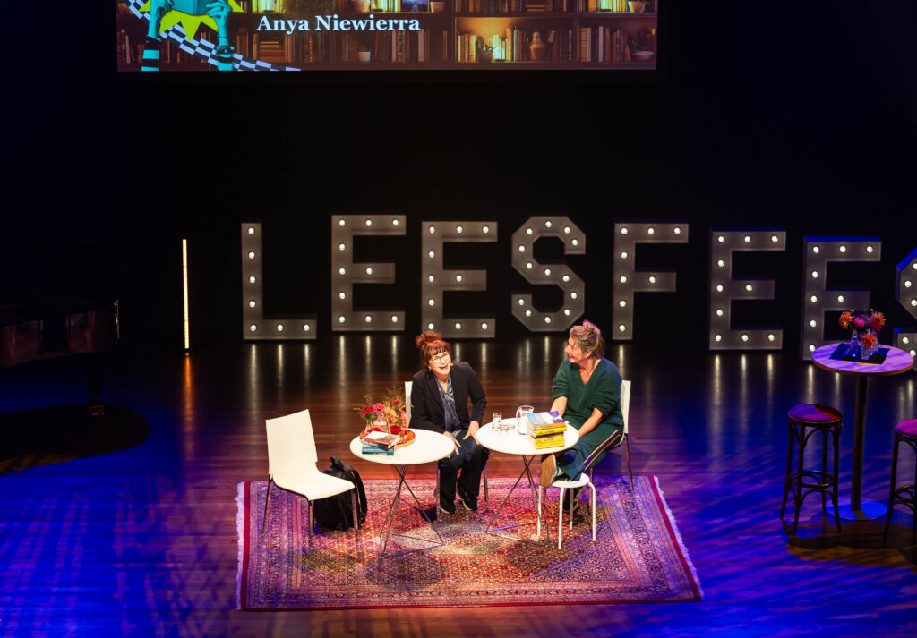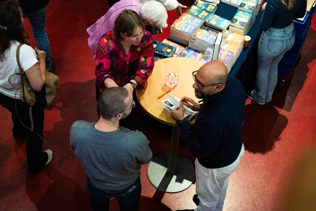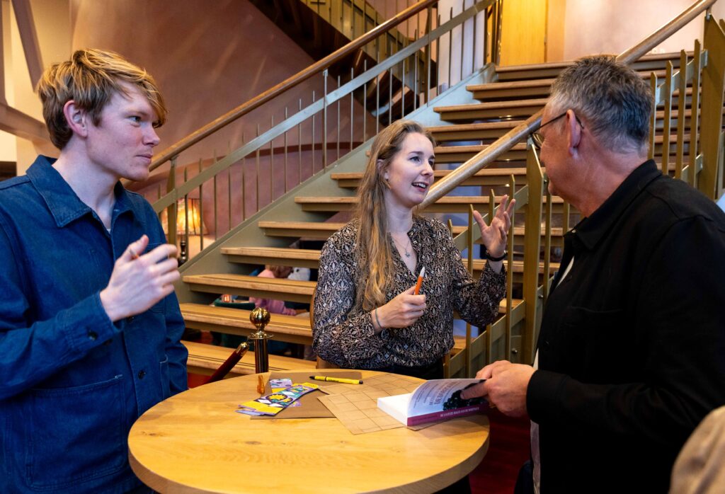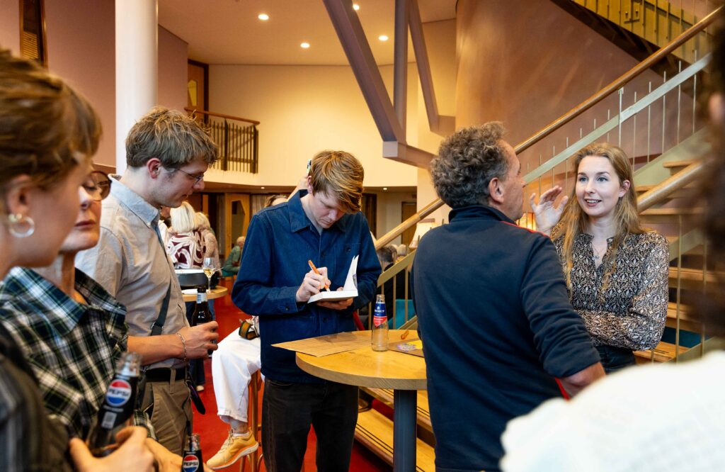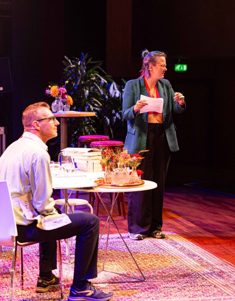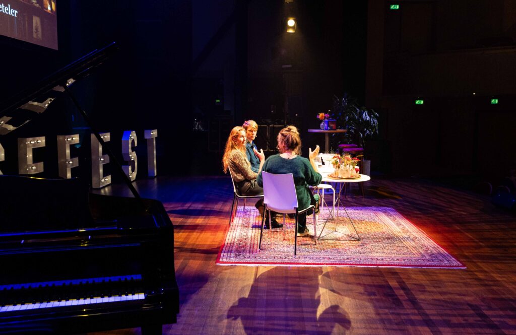 Daarna volgden inspirerende gesprekken met onder meer Anya Niewierra, Abdelkader Benali en Rob van Essen. Van Essen had een primeur: hij liet het publiek meeluisteren naar het eerste hoofdstuk van zijn nieuwe boek en vergeleek zijn creatieve proces met planeten die uit brokstukken ontstaan – een metafoor die zichtbaar indruk maakte. Ook Jilt Jorritsma vertelde beeldend over de ideeën achter zijn werk, wat leidde tot een gesprek “vol lagen”, zoals bezoekers het noemden. Hij ging in gesprek met Anne-Goaitske Breteler over de suïcide van zijn Friese tante. Van Breteler reageerde daarop met haar onderzoek over suïcide op het Friese platteland. Wat volgde was een ontroerend gesprek.